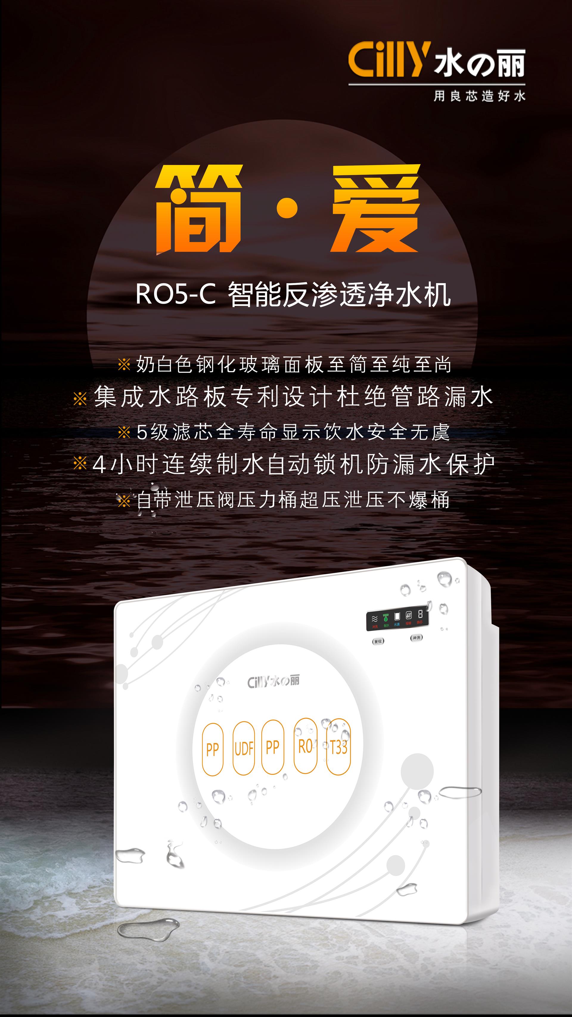 产品详情:CILLY水の丽净水器集成水路板式净水器RO5-C“简爱”已投放市场。根据各地净水器经销商和代理商的反馈,产品性能十分平稳。CILLY水丽净水RO5-C净水器推出的集成水路板“janeai”具以下特点:1.删减并简化。整个机体使用了集成的航路系列专利技术,全然扫除了管道泄漏的高风险。2.乳白色钢化玻璃面板简便,纯净而高雅,使箱式净水器的美观达到了极致。3.整机五级滤芯使用寿命显示,使您的饮用水全然安全。4.机器连续出水4小时后,将自动启动锁定程序,从而实现净水器的漏水保障。5.整个机器配有带泄压阀的压力桶。当自来水的水压超压时,水丽简爱款水器将超压并获释压力,以保证压力桶不会爆炸,并且从未人身和资产安全隐患。